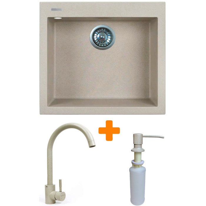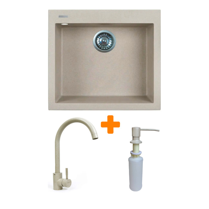 Набір кухонний Adamant Univer, штучний камінь, квадрат, без крила, 560х500х200мм, чаша - 1, врізна, Avena + змішувач та дозатор