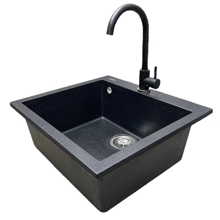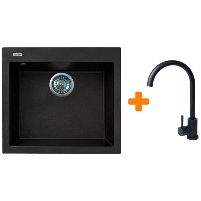 Набір кухонний Adamant Univer, штучний камінь, квадрат, без крила, 560х500х200мм, чаша - 1, врізна, чорний + змішувач