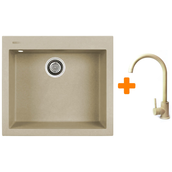 Набір кухонний Adamant Univer, штучний камінь, квадрат, без крила, 560х500х200мм, чаша - 1, врізна, Сахара + змішувач