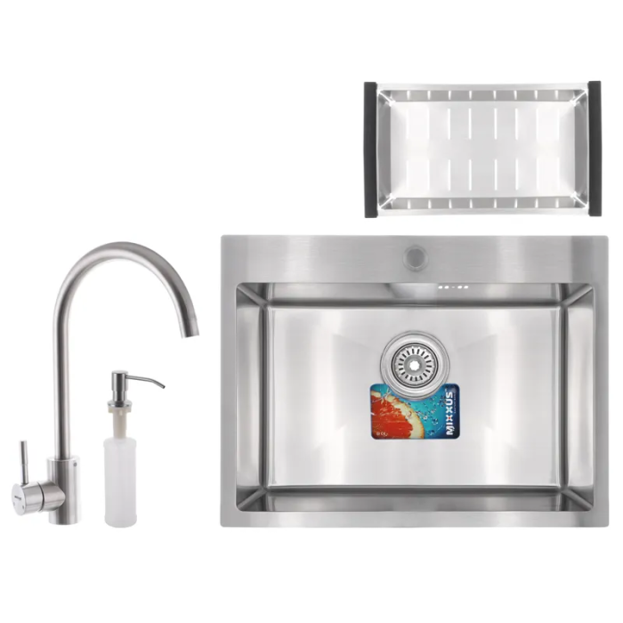 Набір Mixxus SET-6045-200x1.0-Satin (мийка + змішувач + диспенсер + сушка для посуду) (MX0584)