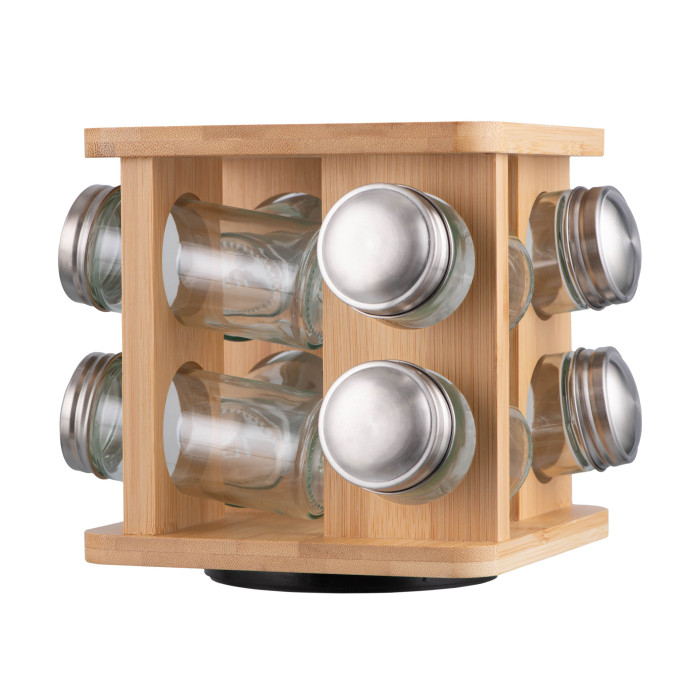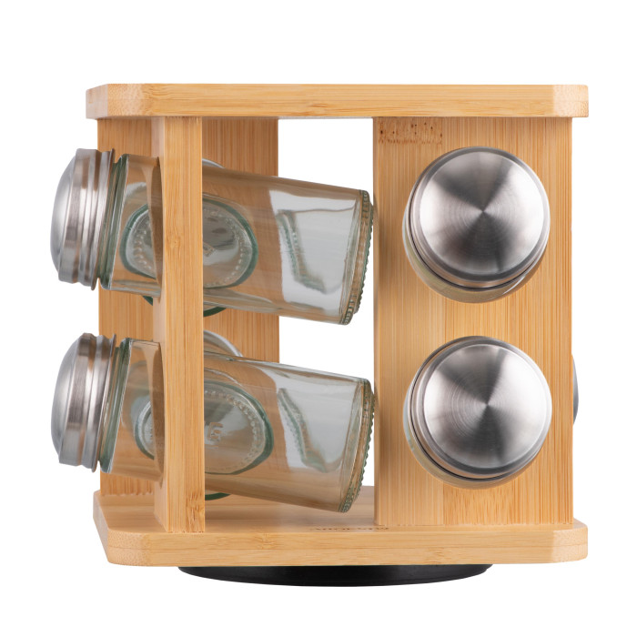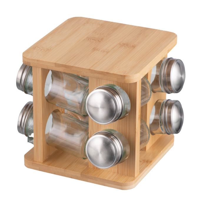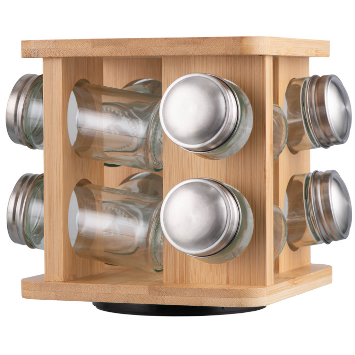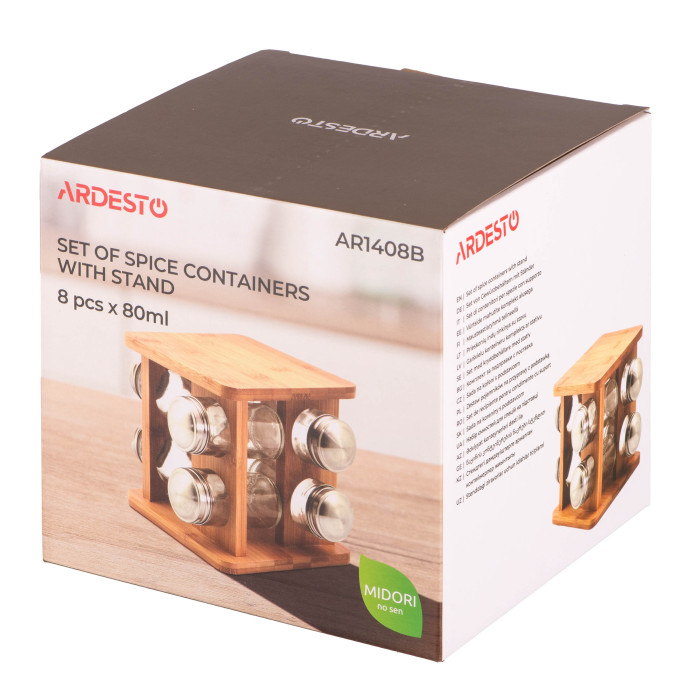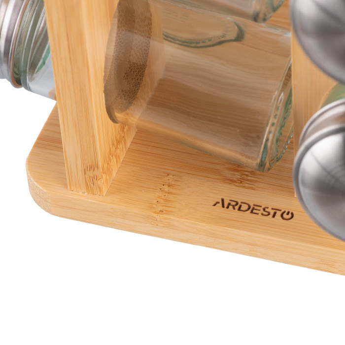 Набір ємностей для спецій на підставці ARDESTO Midori, 9 предметів, 80мл, 19x19x15.5см, бамбук, нержавіюча сталь, скло, пластик