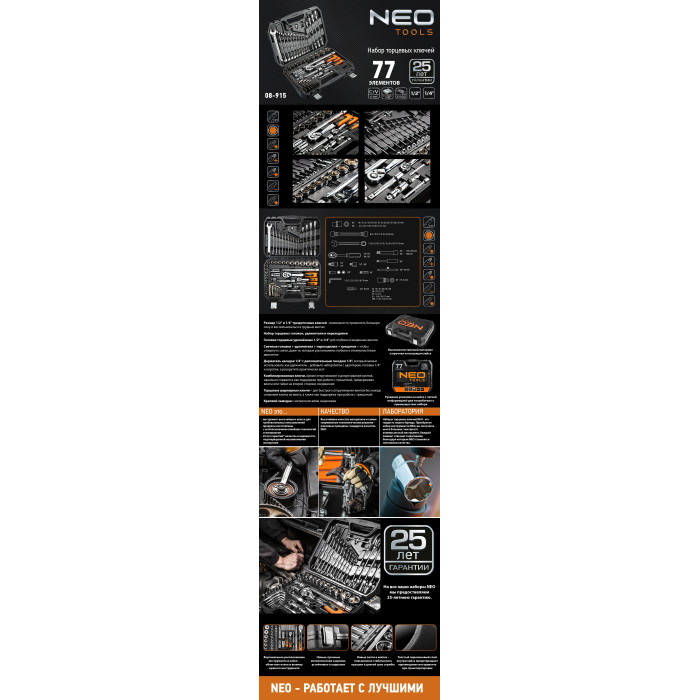 Набір інструментів Neo Tools, набір торцевих головок 1/2", 3/8", 28шт