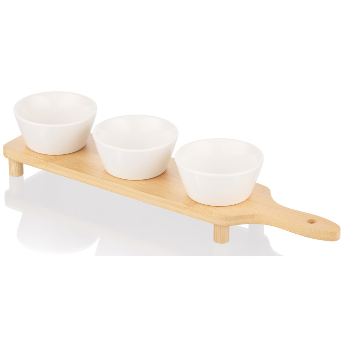 Набір соусників на підставці ARDESTO Midori, 3шт., 110мл, порцеляна, бамбук