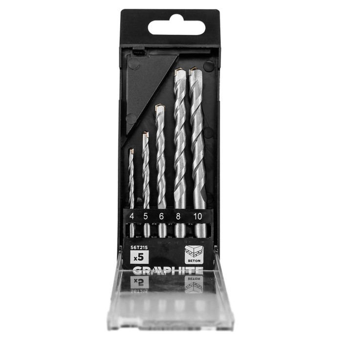 Набір свердел по бетону GRAPHITE 4-10мм, кейс, 5шт