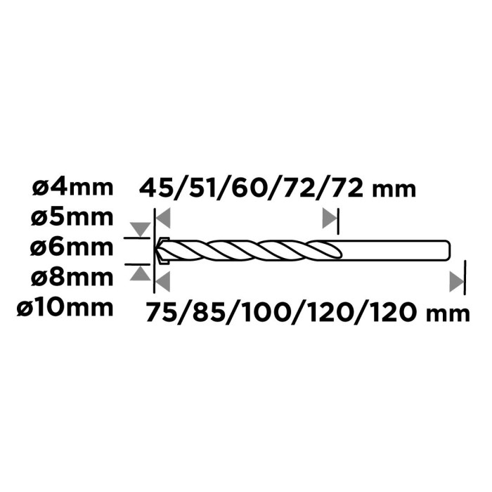 Набір свердел по бетону GRAPHITE призначений для свердління отворів у бетоні, цеглі та камені. Оптимальне рішення для побутових і монтажних робіт з найпопулярнішими діаметрами.