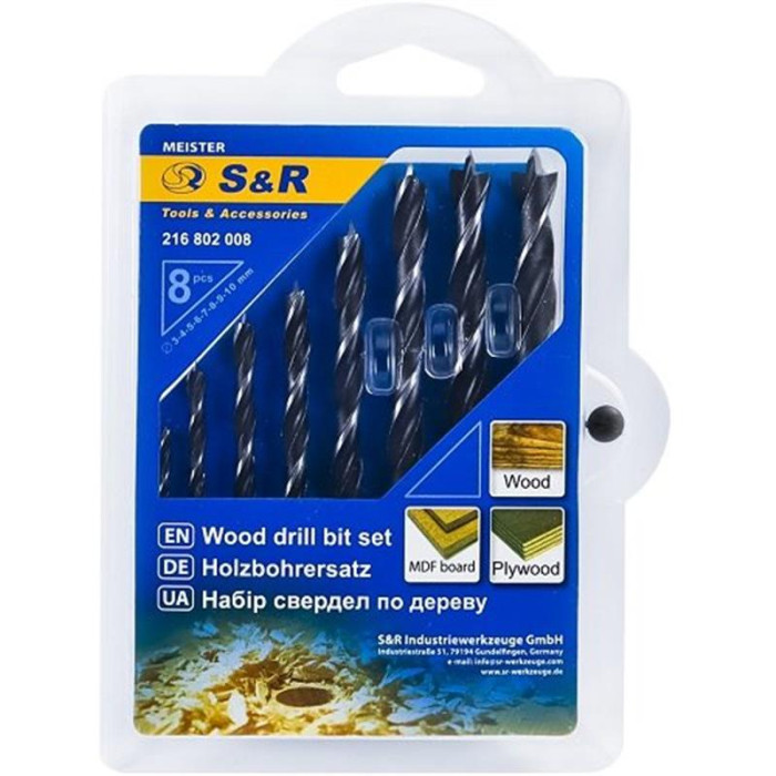 Купівля набору свердел по дереву S&R Meister рекомендується для аматорської або професійної роботи.