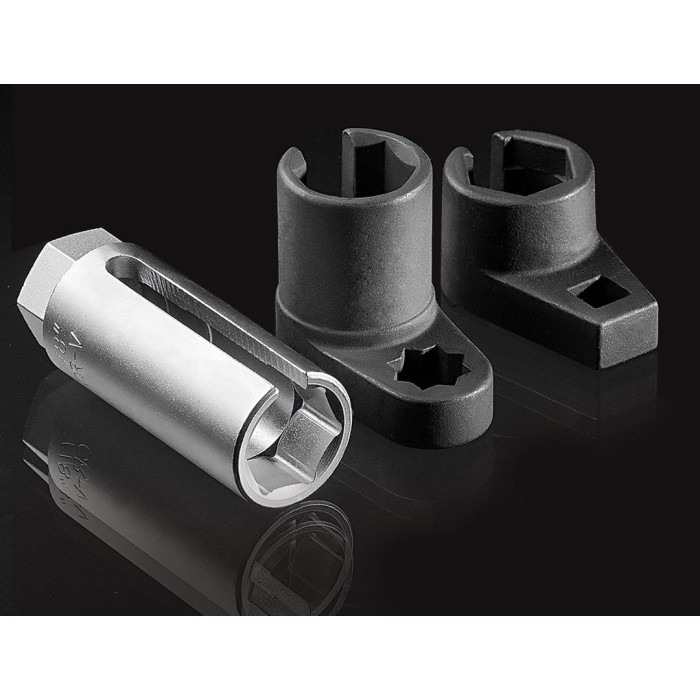 Набір торцевих головок Neo Tools 11-203 призначений для роботи з лямбда-зондами під час обслуговування вихлопної системи. Комплект містить 3 спеціалізовані головки з посадковим квадратом 1/2". Конструкція враховує обмежений простір навколо датчика та наявність проводки. Постачається у кейсі для зберігання та транспортування.