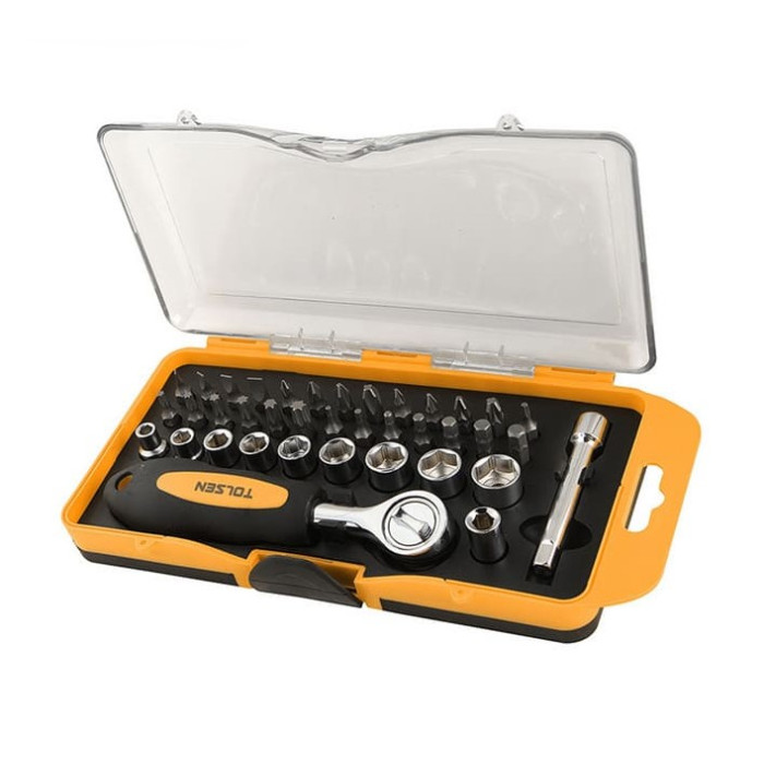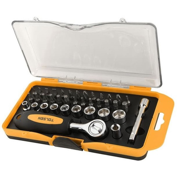 Набір торцевих головок та біт Tolsen, 1/4", з тріскачкою, 38шт