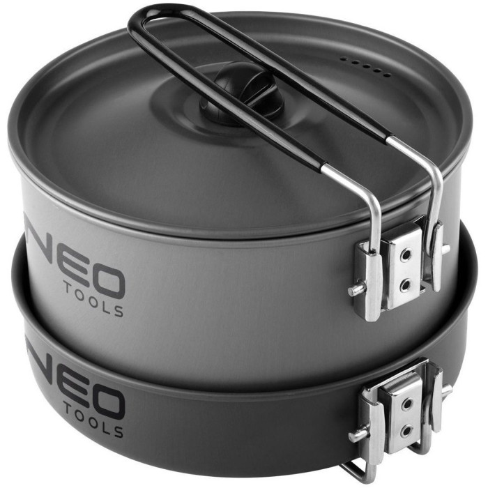 Набір туристичного посуду Neo Tools, 3в1, чайник,каструля,сковорода, складані ручки, сертифікат LFGB, 0.616кг