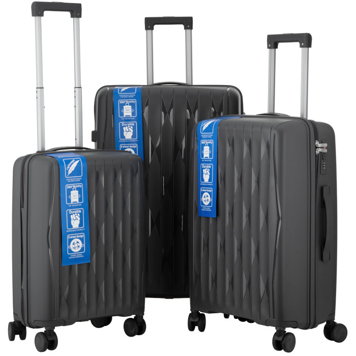 Набор чемоданов 2E, M7979, полипропилен, (L+M+S), молния anti theft, 4 колеса, кодовый замок, темно-серый