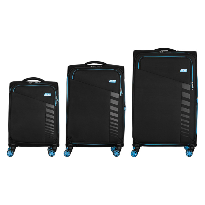 Набір валіз 2E, Trek, (L+M+S), TSA, 4 колеса, + 3 рюкзаки Cabin (2E-BPET-CABIN-BK), поліестр, чорний