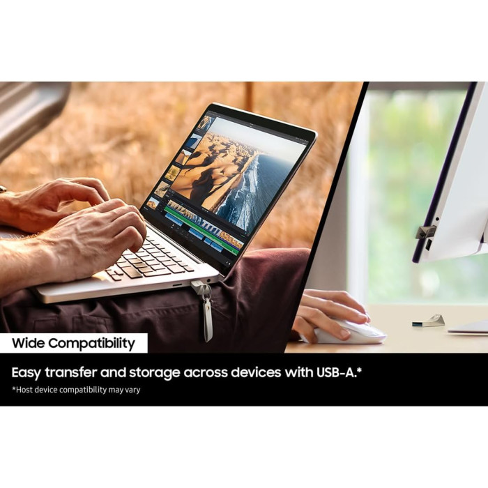 Samsung Bar Plus 512 GB — швидка та надійна USB‑флешка з інтерфейсом USB 3.2 Gen 1. Металевий корпус витримує удари, воду, магнітне поле, рентген і температурні зміни. Забезпечує швидкість читання до 400 МБ/с, запис — до ~110 МБ/с, з підтримкою Plug‑and‑Play та 5‑річною гарантією.