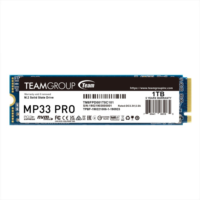 Накопичувач SSD 1TB Team MP33 Pro M.2 2280 PCIe 3.0 x4 3D TLC (TM8FPD001T0C101)