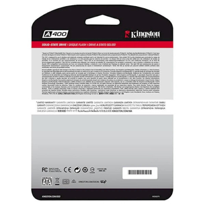 Завдяки відсутності рухомих елементів, SSD Kingston A400 значно стійкіший до вібрацій та динамічних навантажень, ніж традиційні жорсткі диски.
