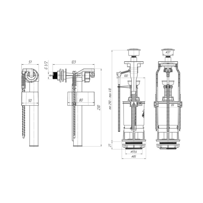 Наливний клапан для бачка унітаза ANIplast з боковим підведенням 1/2" WC6050M - надійний комплект для вашого бачка. Виготовлений з високоякісного пластику, він гарантує довгий термін служби та надійність. Комплектація включає зливний/наливний клапан для ефективного управління рівнем води, хромовану кнопку для стильного вигляду, а також набір кріплення для легкої установки.