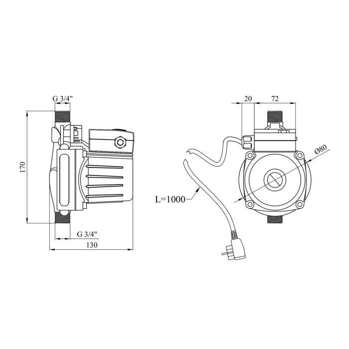 Двигун однофазний, закритий, вентильований, 2850 об / хв. Режим роботи - тривалий. Клас захисту IР44.