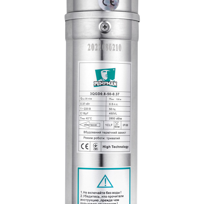 Для побутового та промислового використання призначений насос заглибний шнековий Pumpman 3QGD 0.8-50 370 Вт. Пристрій розміщують в свердловині для перекачування чистої води та її підйому на задану позначку. Максимальна пропускна здатність — 20 літрів за хвилину, напір (максимум) — 130 метрів. І корпус, і вихідний фланець, а також шнек і вал двигуна виготовлені з високоякісної неіржавної сталі.