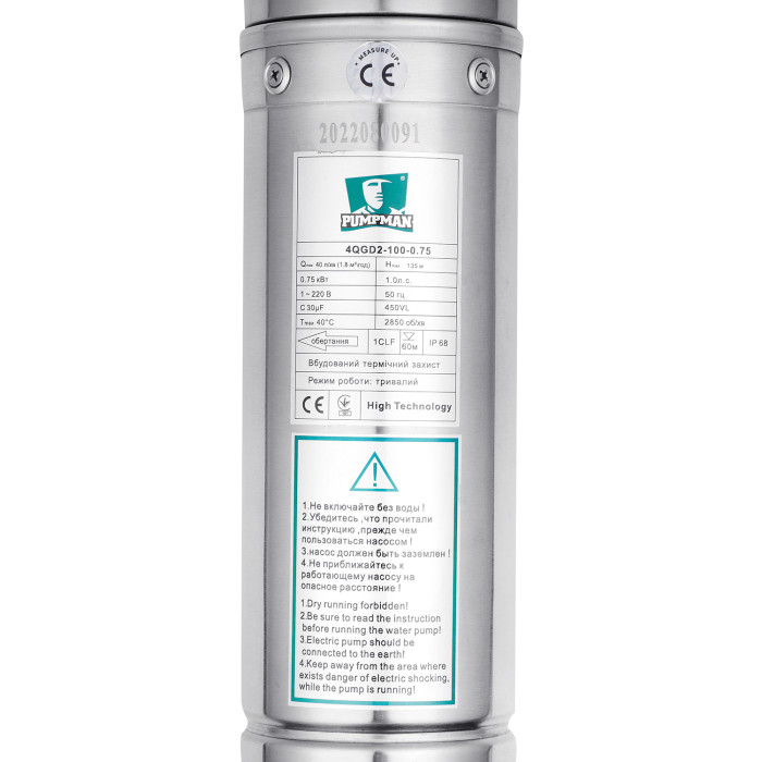 Насос встановлюють так, щоб він повністю був покритий водою, знаходився нижче дзеркала її поверхні (рекомендована глибина занурення — до 30 метрів). Насос заглибний шнековий Pumpman 4QGD 2-100 0,75 кВт доцільно використовувати там, де є необхідність закачати воду зі свердловини або резервуара для водопостачання. Рушійним механізмом виступає шнек — гвинт певної конструкції з нержавіючої сталі, розміщений в стакані з поліпропілену. Діаметр корпусу — 4, а напірного патрубка — 1 дюйм.