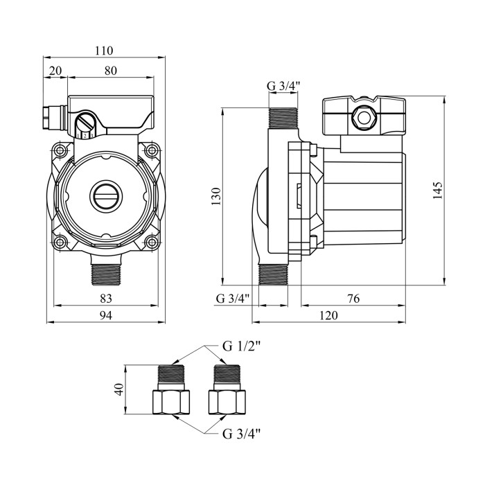 Максимальна витрата (Qmax): 1,5 куб.м/год — забезпечує стабільну циркуляцію навіть за інтенсивної експлуатації.