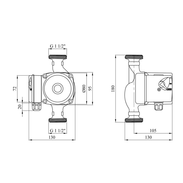 Максимальна витрата (Qmax): 3,6 куб.м/год — забезпечує стабільну циркуляцію навіть при інтенсивній експлуатації.