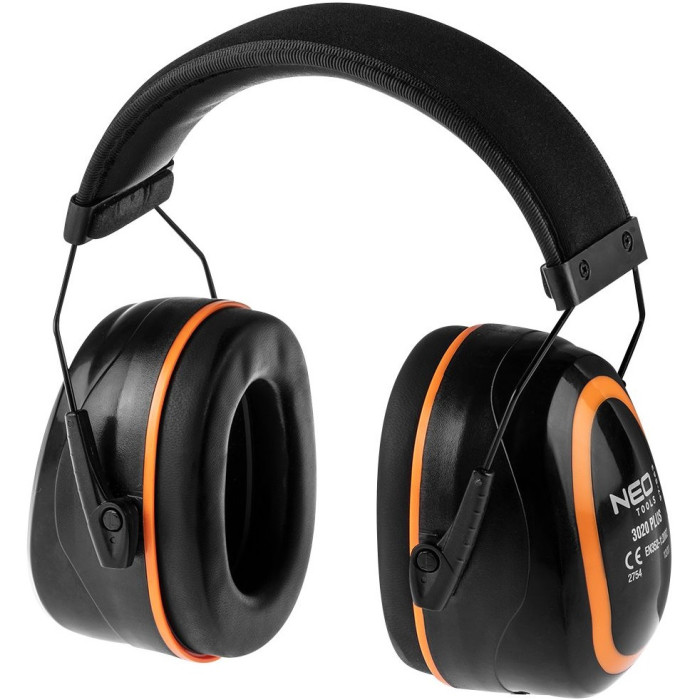 Навушники протишумні, 97-563_PL, NEO призначені для захисту слуху серед з помірним шумом. Вони підходять як професійної роботи, де потрібні засоби захисту органів слуху, так домашніх майстерень. Звукоізоляція дозволяє спілкуватися та чути звукові сигнали. М'яке оздоблення амбушюрів із губки забезпечує комфорт при використанні навіть протягом багатьох годин. Завдяки регулюванню притискної пружини, навушники можна точно відрегулювати по голові без тиску.