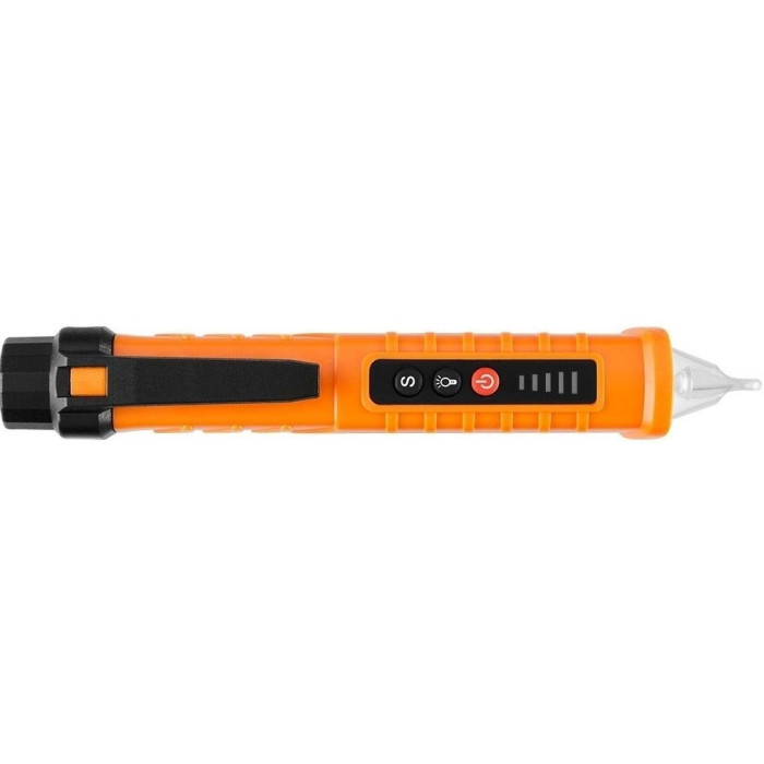 Індуктивний тестер напруги 12-1000 В змінного струму 94-007 від NEO підтримує контактний (70-250 В змінного струму) і безконтактний (70-1000 В змінного струму) методи. Має загальну довжину 145 мм. Оснащений світлодіодним ліхтарем для допомоги, звуковим індикатором, індикатором низького заряду батареї та практичним кишеньковим затискачем. Призначений для пошуку пошкоджень в ізольованих кабелях змінного струму, перевірки фази в електричних розетках змінного струму та знаходження проводів під напругою в стіні під штукатуркою. Тестер напруги марки NEO оснащений джерелом живлення 2x AAA. Частота становить 50/60 Гц. Він має функцію тестування точки обриву і тест на безперервність. Це інструмент, який може легко знайти несправність в електричній установці.