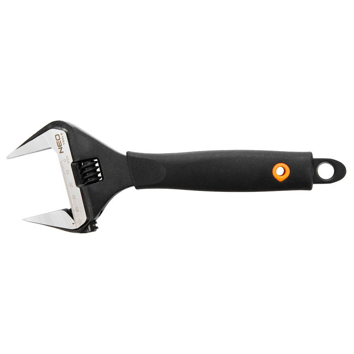Розвідний ключ NEO (арт. 03-016) довжиною 250 мм, викуваний з міцної хром-ванадієвої сталі. Відрізняється дуже широким діапазоном регулювання щелеп - до 50 мм. Відстань між губками на 40% ширше, ніж у стандартних ключів. Розширена і звужена головка дозволяє працювати у важкодоступних місцях. Ергономічна ручка покрита масло- і жиростійким пластиком TPR. Якість інструменту підтверджена сертифікатом TÜV та 25-річною гарантією виробника. Бренд NEO відповідає очікуванням професіоналів.
