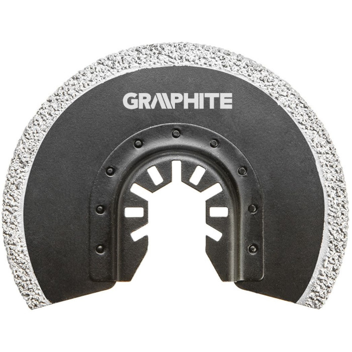 Диск півкруглий по кераміці GRAPHITE (арт. 56H004) діаметром 85 мм характеризується посипкою крихтою карбіду вольфраму. Він дозволяє прецизійно різати стінову плитку по прямій лінії та усування швів за допомогою мультитула GRAPHITE.