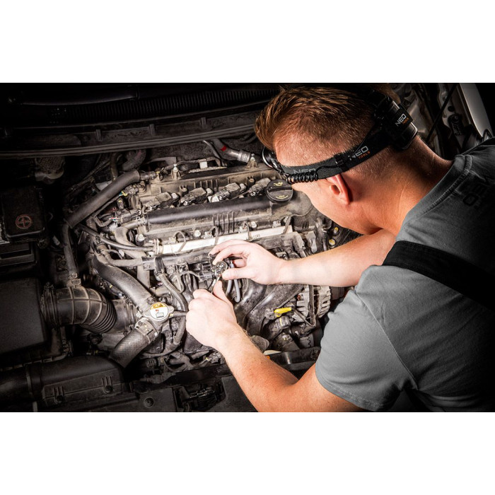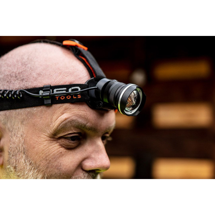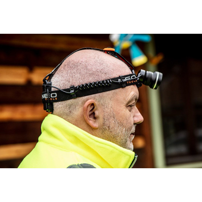 Виключно потужний (400 люменів) чоловий ліхтар NEO, обладнаний висококласним світлодіодом LED Cree R5 потужністю 5 Вт. Корпус, виготовлений із алюмінію, ефективно відводить тепло. Ліхтар має функцію масштабування (т.зв. «зум»), яка дозволяє звузити світловий пучок, і регулювання дальності світла. Регулювання кута світіння. Має 3 функції світіння 100% / 50% / стробоскоп. Живлення від 3 елементів типу AAА. Дуже широкий діапазон застосування, у тому у майстерні, для електриків, сантехніків, на вилазці, під час мандрівок, занять спортом. Відповідність європейським стандартам безпеки забезпечується сертифікатом CE. Марка NEO відповідає очікуванням професіоналів.