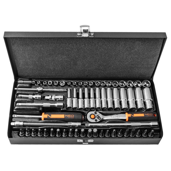 Neo Tools Набір інструментів, Набір торцевих головок, 63шт, 1/4", CrV, металевий кейс