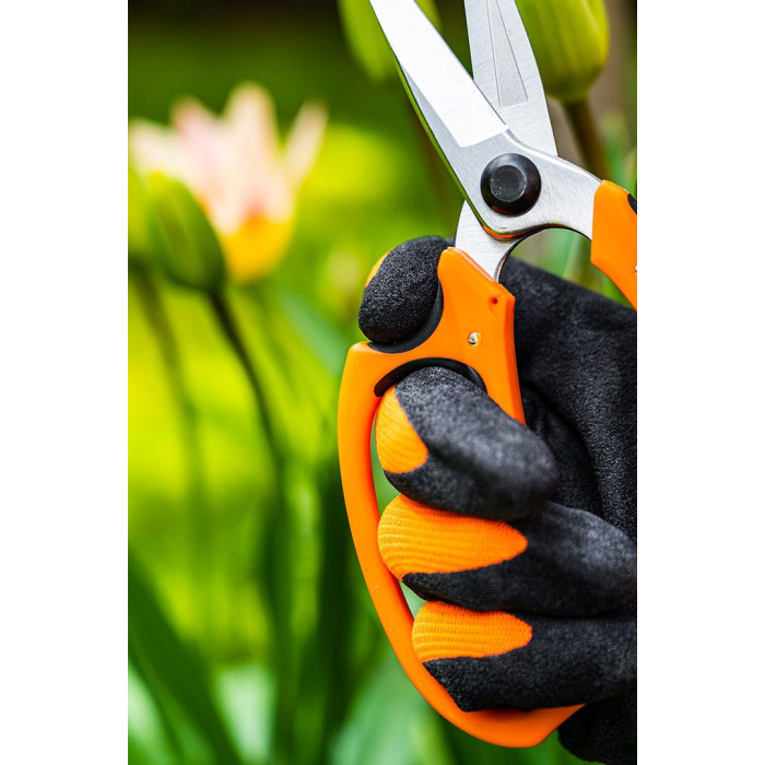 Садовые ножницы 185 мм 15-215 NEO пригодятся дома для ухода за комнатными цветами, а в саду - для сбора трав, составления букетов или обрезки лиан. Этот универсальный инструмент имеет очень важное преимущество - он не занимает много места и его удобно носить в кармане. Ручки ножниц профилированы таким образом, чтобы обеспечить максимальное прилегание к руке. Их эргономичная форма дополнена мягкими элементами внутри и снаружи ручек, что повышает удобство использования. Максимальный диаметр резки этой модели составляет 5 мм.