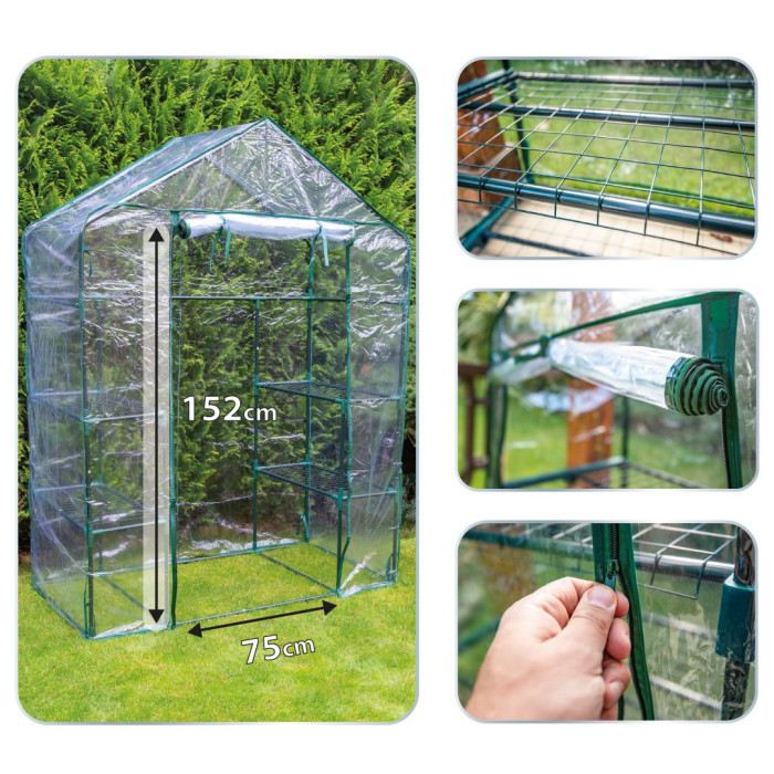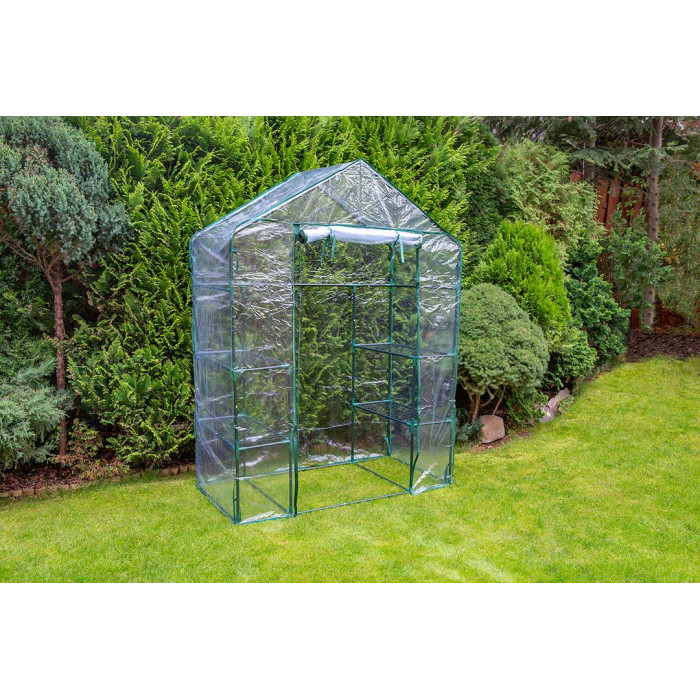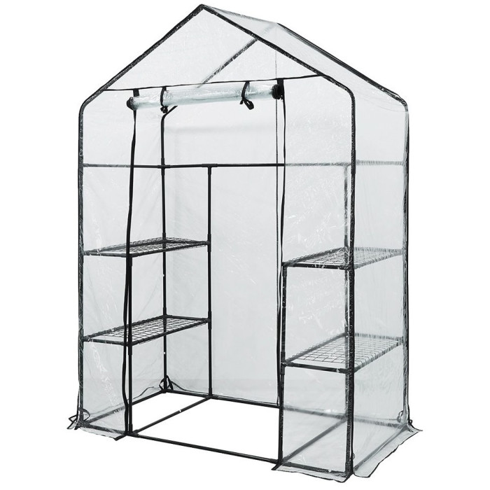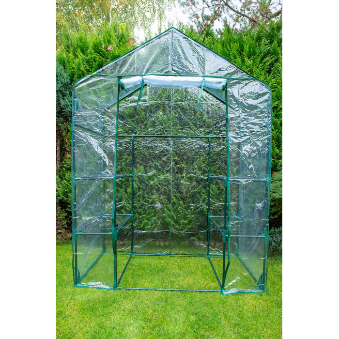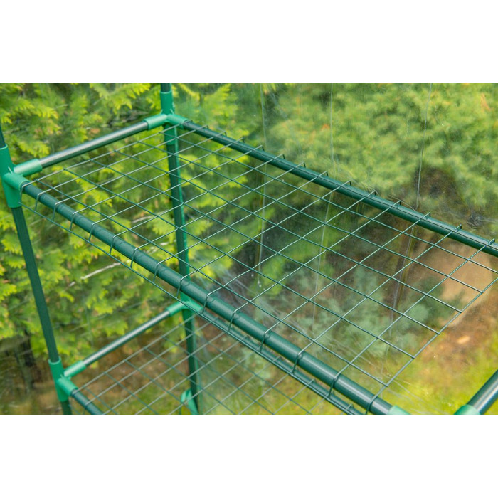 Для використання вдома та поза домом теплиця з металевою конструкцією та ПВХ плівкою від торгової марки NEO. Його розміри 143х73х195см. Він має чотири практичні полиці, які дозволяють розмістити більше рослин у тому самому просторі. У теплиці чудові умови для вирощування зелені, дрібної розсади овочів та фруктів. Зручно закривається на блискавку - крім того, має можливість закатати передню стінку. Теплиця розкладна, тому в невикористаному стані не займає багато місця. Він має стабільну структуру та міцний металевий каркас з порошковим покриттям.