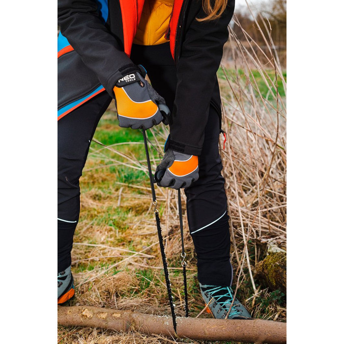 Пилка ручна ланцюгова NEO, 53 см 63-158 - це інструмент із лезом із марганцевої сталі з твердістю 52-54 HRC. Вона має рукоятку з ABS, а її повна вага складає 150 г. Довжина всієї пили становить 98 см, а довжина полотна – 53 см. Інструмент оснащений самоочисними та двонаправленими зубами. Складана конструкція у вигляді кишені дозволяє легко зберігати його в нейлоновому чохлі, що входить до комплекту. Бренд NEO рекомендується любителям виживання.