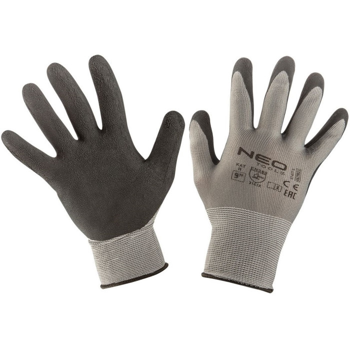 Neo Tools Рукавички робочі, латексне покриття, поліестер, р.9, сірий