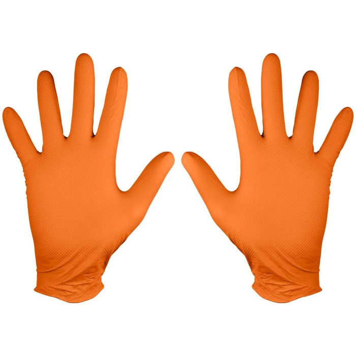 Перфоровані нітрилові рукавички, помаранчеві, 50 штук, розмір L, 97-690-L від NEO - це рукавички, виготовлені з міцнішого матеріалу, ніж звичайний нітрил, що надає їм більшої стійкості до проколів або розривів у суворих умовах. Текстурована алмазна поверхня відводить рідини і забезпечує найкраще захоплення. Рукавички знижують навантаження на руку та підвищують безпеку користувача. Вони містять порошку, що рекомендується для алергіків. Ця модель також відрізняється двосторонністю, тому рукавички ідеально сидять на обох руках, що робить їх більш швидким та легким вдяганням.