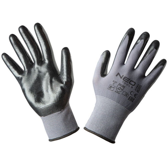 Neo Tools Рукавички робочі, нітрилове покриття, нейлон, р.8, сірий