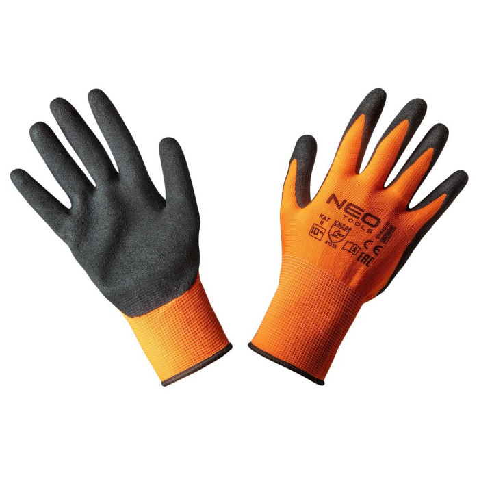 Neo Tools Рукавички робочі, нітрилове покриття, поліестер, р.10, помаранчевий