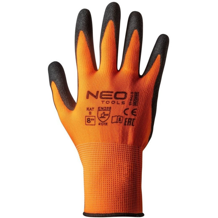 Neo Tools Рукавички робочі, нітрилове покриття, поліестер, р.9, помаранчевий
