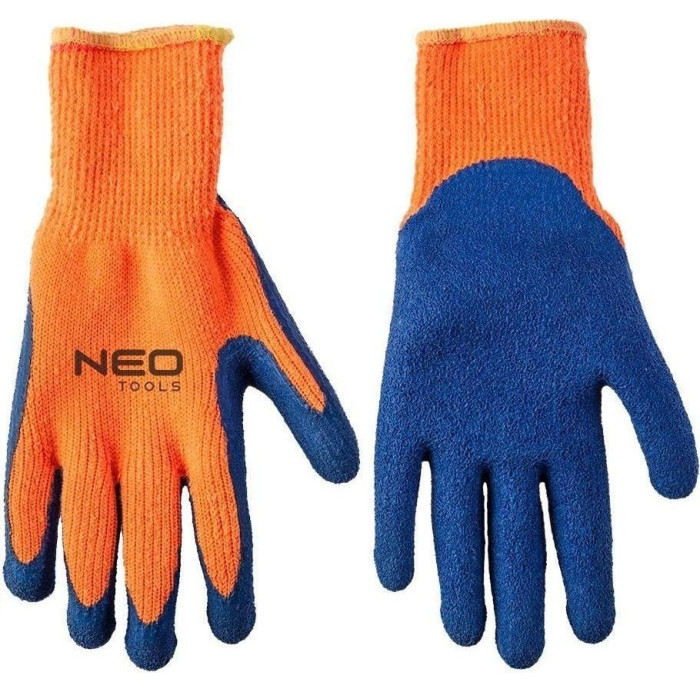 Neo Tools Рукавички робочі, утеплені, латексне покриття, поліестер, р.10, помаранчево сині