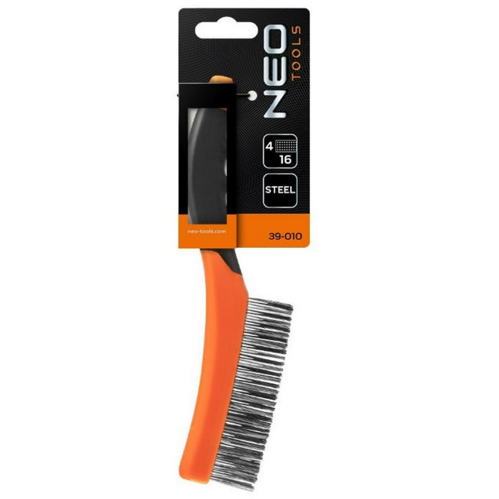 Щетка проволочная Neo Tools прямая, 4х16 рядов, прямая проволока 0.3мм, 260мм, двухкомпонентная рукоятка 39-010