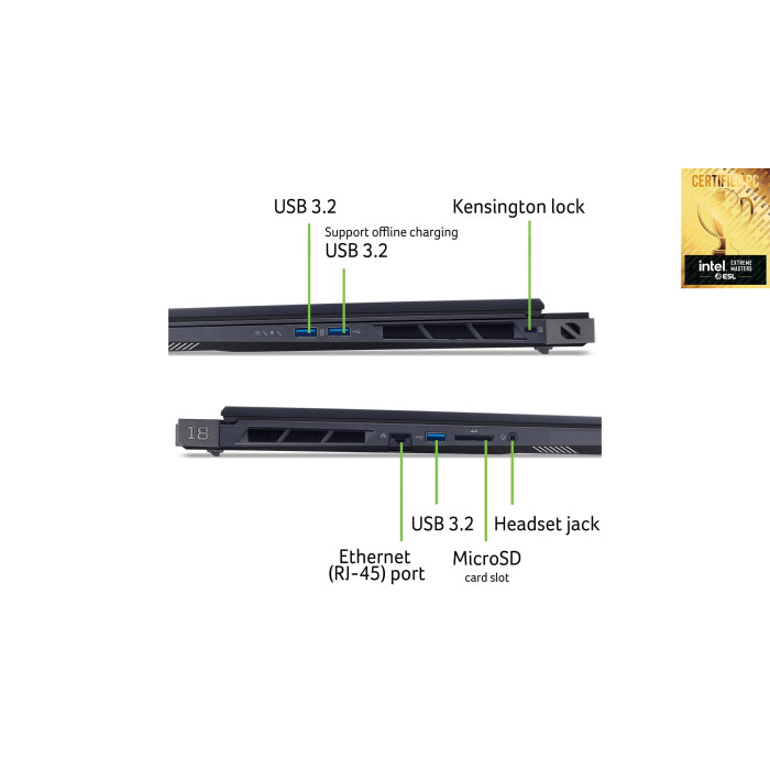 Acer Predator Helios 18 PH18-73 — потужний 18″ ігровий ноутбук із WQUXGA IPS-дисплеєм, оснащений процесором Intel Core Ultra 9 275HX (24 ядра, ~5.4 ГГц), фантастичними 96 ГБ DDR5, 4 ТБ SSD, топовою графікою NVIDIA GeForce RTX 5090 із 1334 AI TOPS та Windows 11 Pro у стильному чорному корпусі.