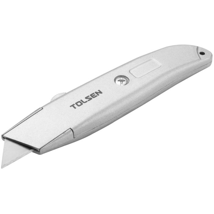 Ніж інструментальний Tolsen призначений для різання паперу, шпалер, плівки, скотча, монтажної піни, ковроліну, гіпсокартону. Ріжучий інструмент характеризується високим ступенем безпеки і застосовується на складах, будівництвах, при виконанні домашніх та офісних робіт.