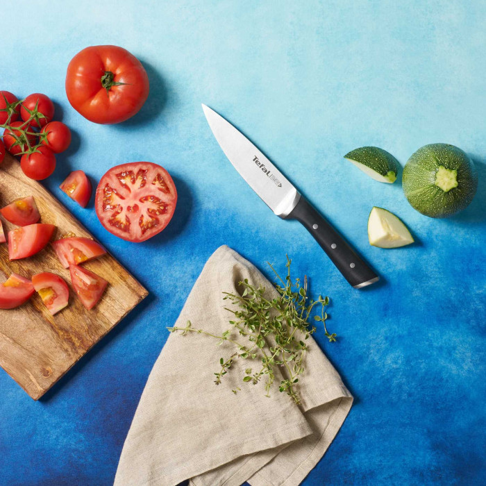 Ніж шеф-кухаря Tefal Ice Force довжиною 15 см - це ідеальний інструмент для щоденного приготування їжі. Завдяки технології Ice Force лезо зберігає гостроту значно довше, забезпечуючи точне нарізання та легкість роботи з продуктами. Лезо виготовлено з високоякісної нержавіючої сталі, що підвищує його стійкість до корозії. Ергономічна ручка забезпечує комфорт та надійне захоплення, роблячи цей ніж незамінним помічником на кухні.
