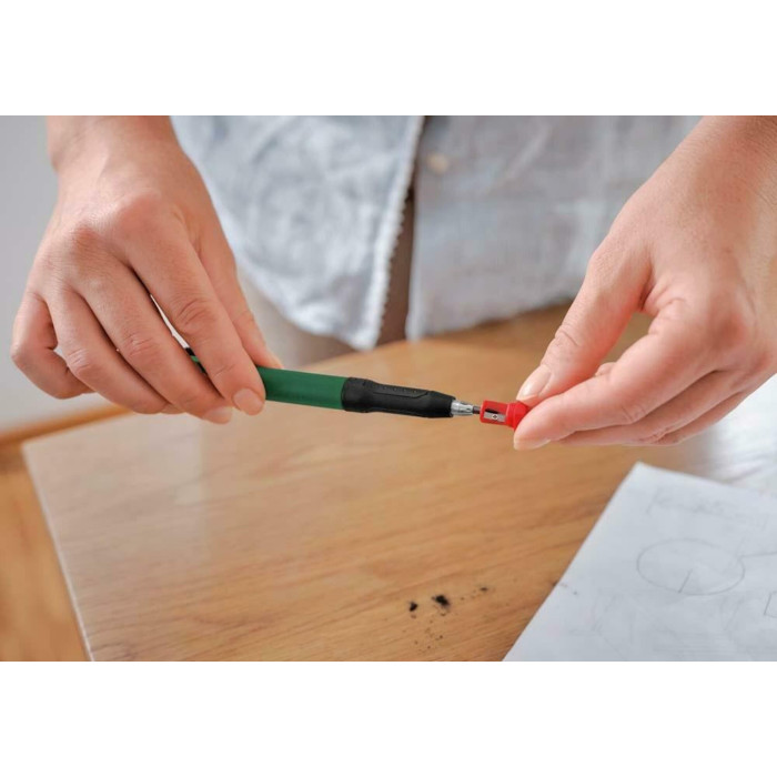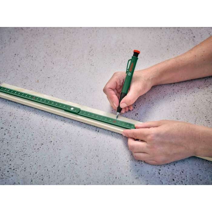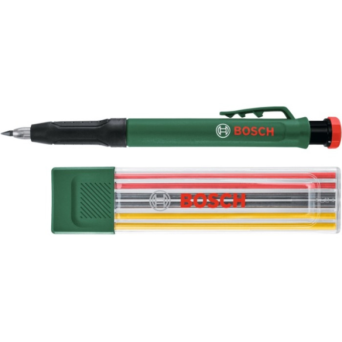Механічний олівець Bosch для розмітки глибоких отворів призначений для точної роботи у важкодоступних місцях. Підходить для нанесення розмітки на папері, деревині, камені та інших матеріалах. Оснащений знімним ковпачком і трубкою з нержавіючої сталі для глибоких отворів малого діаметра. Міцний корпус і вбудована точилка забезпечують довговічність та зручність у використанні.