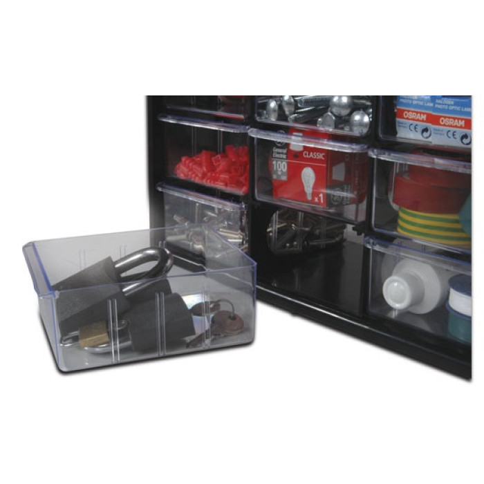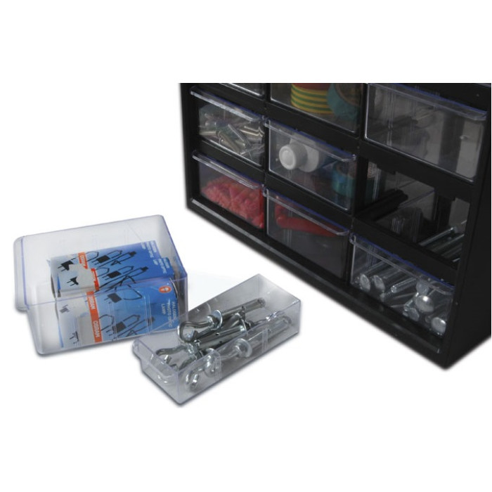 Органайзер вертикальний з 39 висувними відділеннями (9 великих + 30 малих) пластмасовий. Допоможе зручно зберігати інструменти.