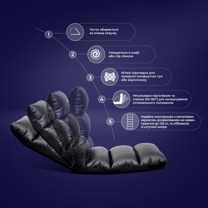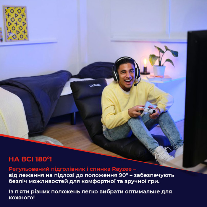 Складне ігрове крісло для комфортної гри на приставці. Це справді так просто! Завдяки складній конструкції ваш Rayzee готовий до роботи ще до того, як ваша консоль завантажиться. Коли ви закінчите, просто складіть і помістіть його в шафу або під ліжко.