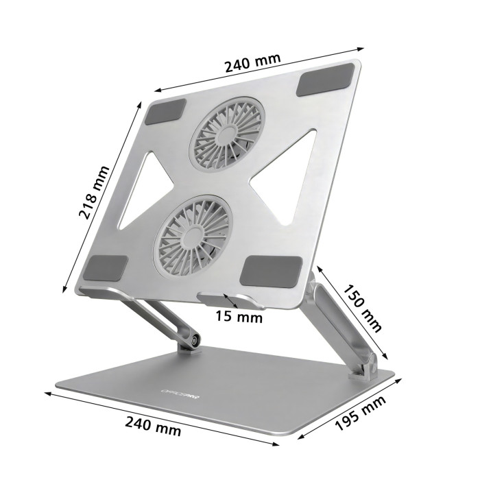 Ця неймовірно стильна підставка виготовлена з високоякісного алюмінію, силікону та пластику, забезпечуючи найвищу якість і довговічність. Її антиковзкі силіконові фіксатори надійно утримують ваш ноутбук на місці, навіть під час інтенсивної роботи.