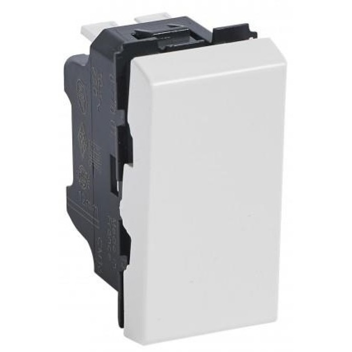 Перемикач Legrand Mosaic, 10АХ, 250В, з безгвинтовими зажимами 1 модуль, 1 клавішний, білий