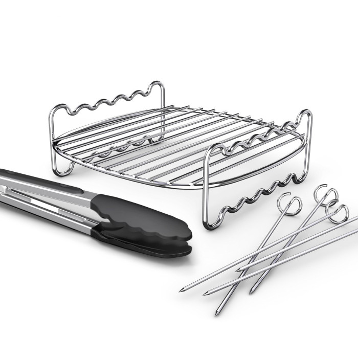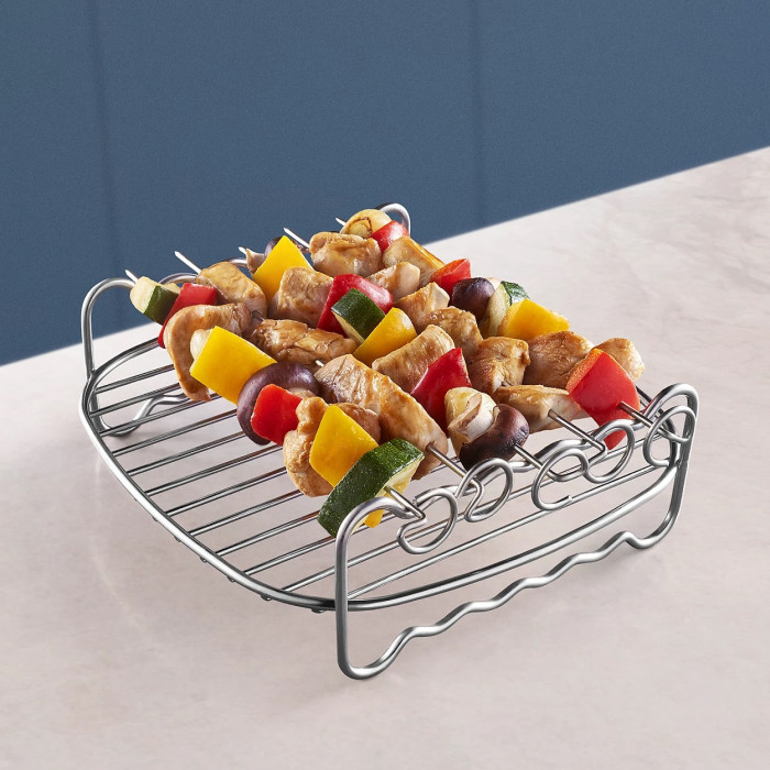 Максимально збільште поверхню приготування мультипечі за допомогою дворівневої решітки Philips. Готуйте на грилі та смажте смачні бургери, курячі крильця, рибу й інші страви в легкий, швидкий і здоровий спосіб. Використовуйте шампури для приготування овочевих чи м’ясних шашликів.