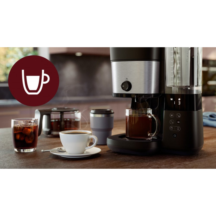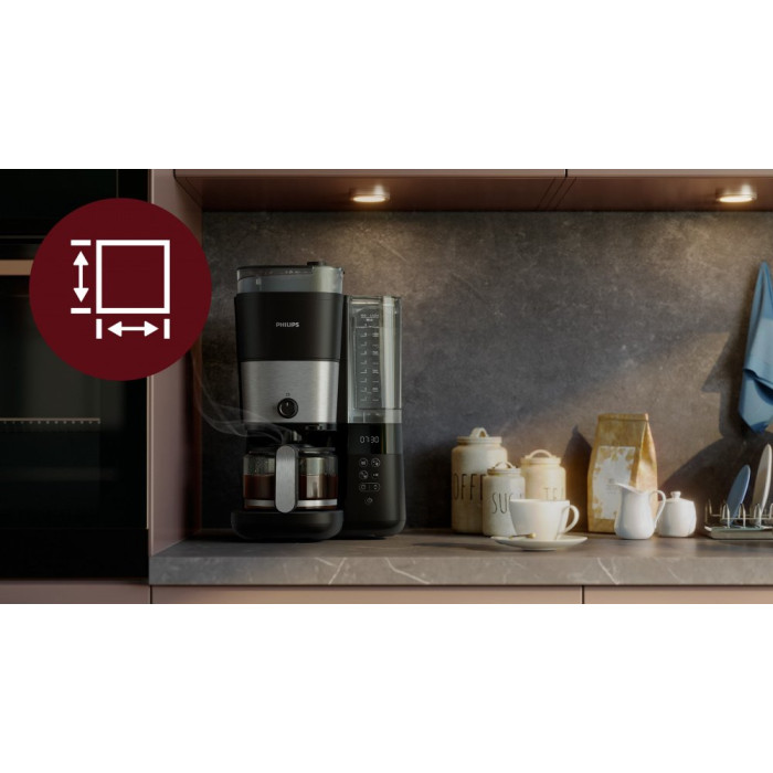 Philips Кофеварка капельная All-in-1 Brew, 1.25л, зерно+молотый, дисплей, подогрев кофейника, кофемолка, черный